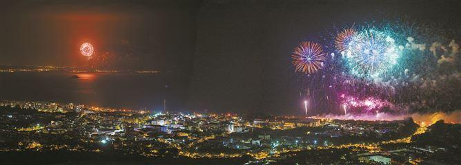 焰火在厦门、金门上空华彩绽放。(本报记者 许秋珩 摄)